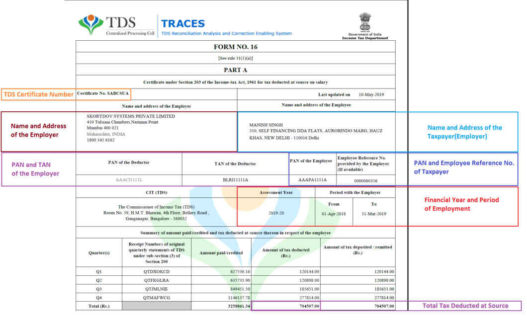 Form 16 Tds Certificate Issued By Employer Learn By Quicko